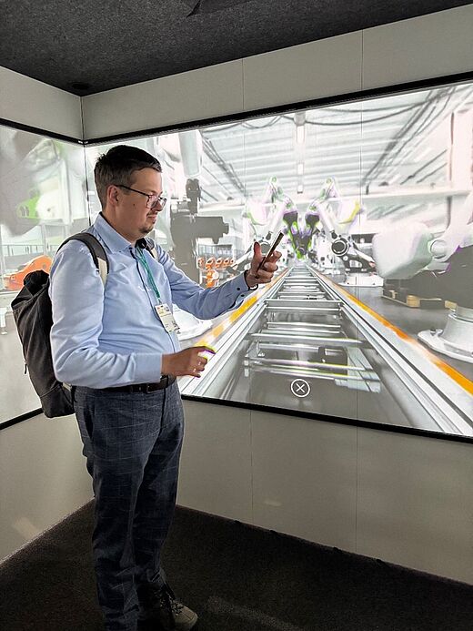 Die Messe ist ein Ort, an dem die neusten Technologien und Trends der (betrieblichen) Bildung von morgen gezeigt und ausprobiert werden. So haben wir zum Beispiel einen „Immersive Cube“ kennengelernt. Das ist eine Art Würfel mit Tür, in den User:innen für Workshops und Trainings abtauchen können und alle Flächen um die Person interaktiv mit Inhalten bespielt werden können. Von der Entspannungseinheit in der Pause, über Lerneinheiten zu Soft-Skills oder fachlichen Prozessen und Arbeitsabläufen ist hier vieles möglich.