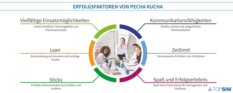 Darüber hinaus sorgt Pecha Kucha für eine abwechslungsreiche Lernumgebung. Im Vergleich zu klassischen Präsentationen bringt das dynamische Zeitformat Schwung in den Unterricht oder Arbeitsalltag und steigert die Motivation der Beteiligten. Zudem fördert die Methode das Arbeiten im Team, wenn Gruppen gemeinsam Präsentationen vorbereiten.