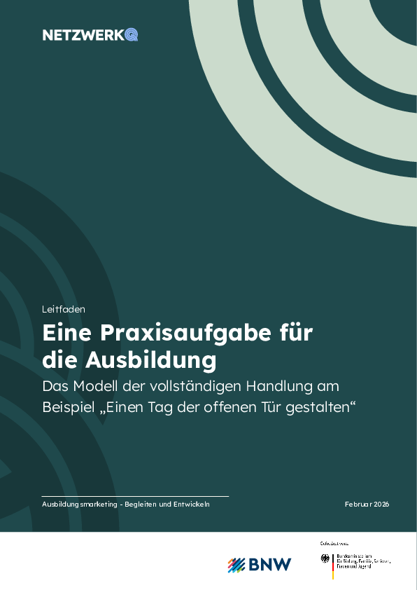 Wie lässt sich das Modell der vollständigen Handlung praxisnah umsetzen? Am Beispiel „Einen Tag der offenen Tür gestalten“ erproben Ausbilder:innen mit Auszubildenden alle Schritte des Modells. Vorlagen und Hinweise helfen, den Prozess strukturiert und zielgerichtet zu gestalten.