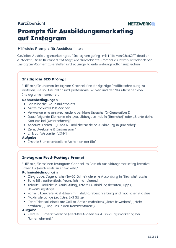 Prompts für Ausbildungsmarketing auf Instagram planen