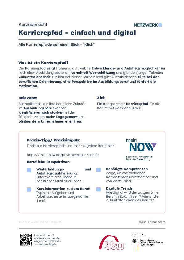 Der Karrierepfad zeigt frühzeitig auf, welche Entwicklungs- und Aufstiegsmöglichkeiten nach einer Ausbildung bestehen, vermittelt Wertschätzung und gibt den jungen Talenten Zukunftssicherheit. Ein klar definierter Karrierepfad gibt Auszubildenden Hilfe bei der beruflichen Orientierung, eine Perspektive im Ausbildungsberuf und fördert die Motivation.