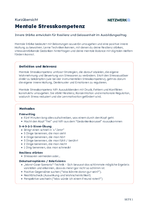 Mentale Stärke bedeutet mit Belastungen souverän umzugehen und eine positive innere Haltung zu bewahren. Lerne Techniken kennen, mit denen du deine Resilienz stärken, stressverstärkende Gedanken hinterfragen und deine mentale Balance mit digitalen Helfern fördern kannst.