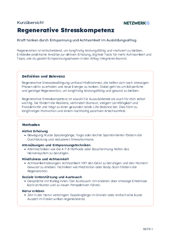 Regeneration ist entscheidend, um langfristig leistungsfähig und motiviert zu bleiben. Entdecke praktische Ansätze zur aktiven Erholung, digitale Tools für mehr Achtsamkeit und Tipps, wie du gezielt Entspannungsphasen in den Alltag integrieren kannst.