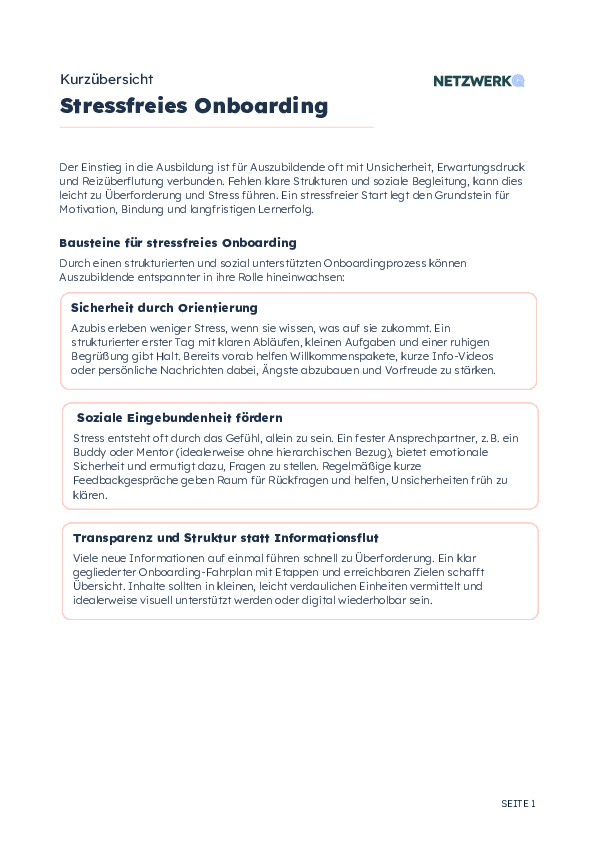Der Einstieg in die Ausbildung ist für Auszubildende oft mit Unsicherheit, Erwartungsdruck und Reizüberflutung verbunden. Fehlen klare Strukturen und soziale Begleitung, kann dies leicht zu Überforderung und Stress führen. Ein stressfreier Start legt den Grundstein für Motivation, Bindung und langfristigen Lernerfolg.