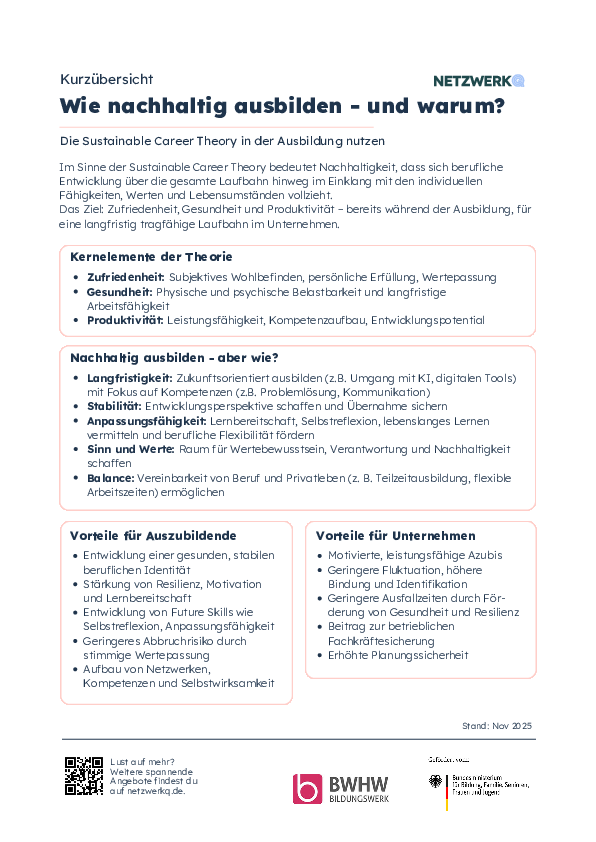 Im Sinne der Sustainable Career Theory bedeutet Nachhaltigkeit, dass sich berufliche Entwicklung über die gesamte Laufbahn hinweg im Einklang mit den individuellen Fähigkeiten, Werten und Lebensumständen vollzieht.